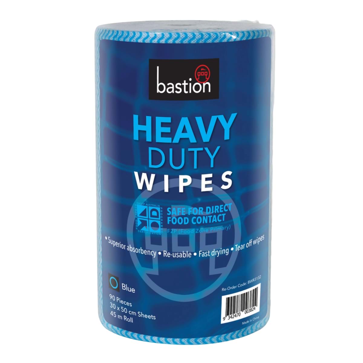Wipes - Heavy Duty Absorbent - Reusable - 30cm x 50cm x 45m Tear-off Roll - Blue