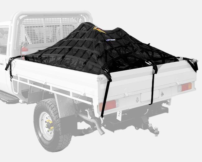The LSN-200 is our second most popular net in the range. It is designed for the Single Cab market and trailers up to 10ft, it is slightly bigger than a single cab tray at 3000 x 2600 mm, but that is so you can allow for a load so the net can go up and over. This net has come with 6 x 1m straps and comes with a heavy duty carry bag. The LSN-200 is load rated at 1000KG.