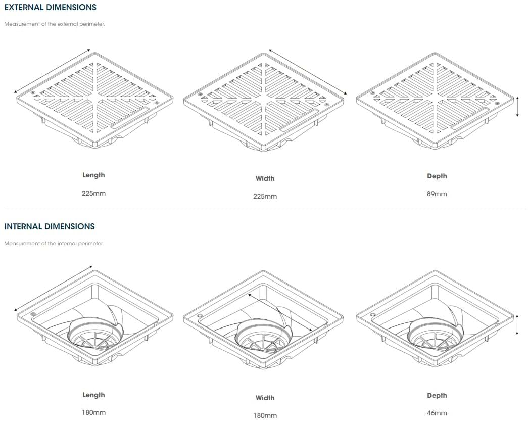 Unipit 200 Drain Pit - 225x225x89mm Aluminium Grate