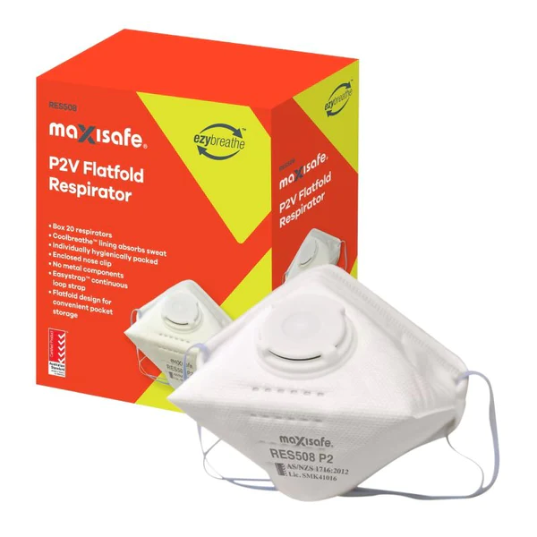 Coolbreathe lining absorbs sweat Individually hygienically packed. Enclosed nose clip. No metal components. Easystrap - continuous loop strap. Flatfold design for convenient pocket storage. Certified to AS/NZS 1716. Box of 20 Masks (Cartons of 12 boxes).