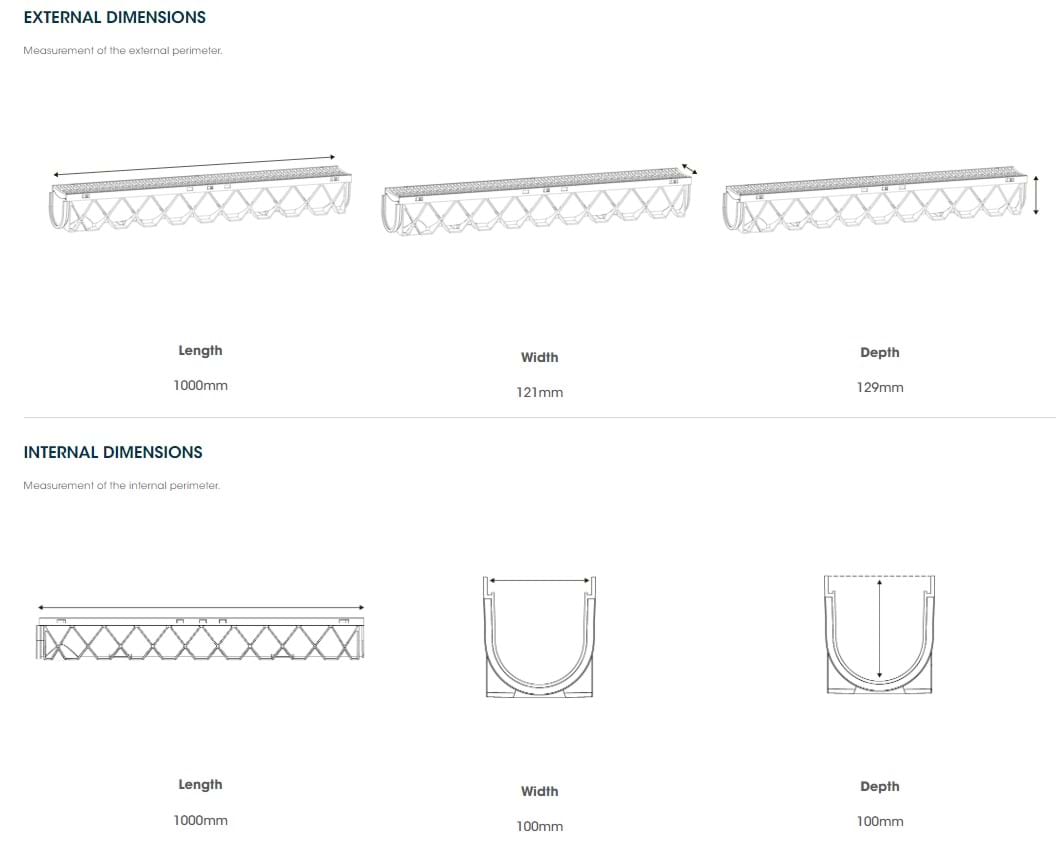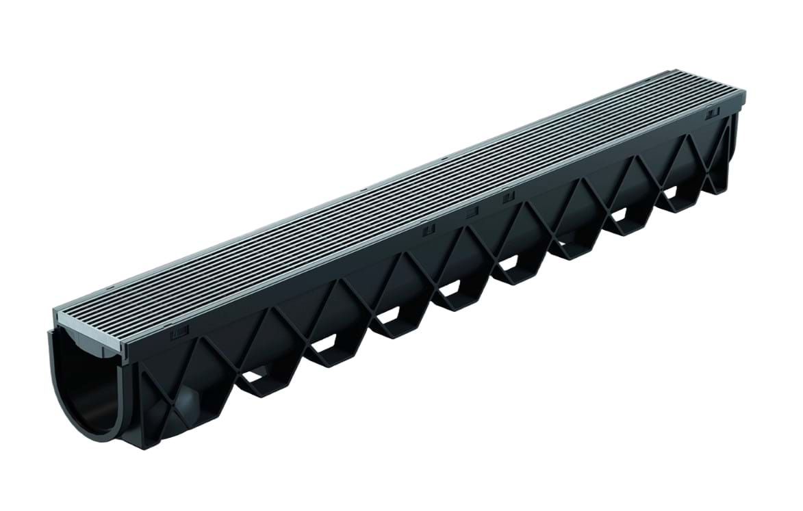 RELN Storm Drain is the complete surface drainage solution, with a deep 100mm profile. Storm Drain effectively collects and distributes large volumes of surface water throughout its system.