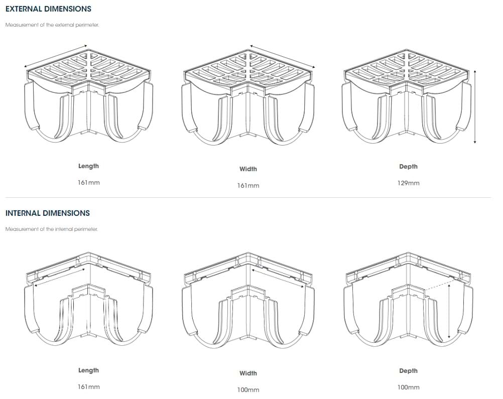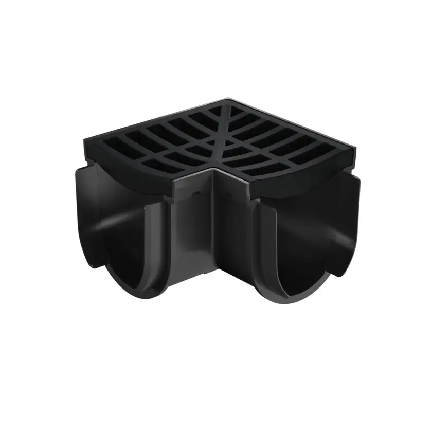 The Storm Drain Corner allows a 90 degree change of direction in RELN Storm Drain Channels. The unique design allows left or right turns, and is easy to install. The Black Plastic Grate is a concave profile, making it perfect for use in paths, driveways, courtyards and trafficable areas.